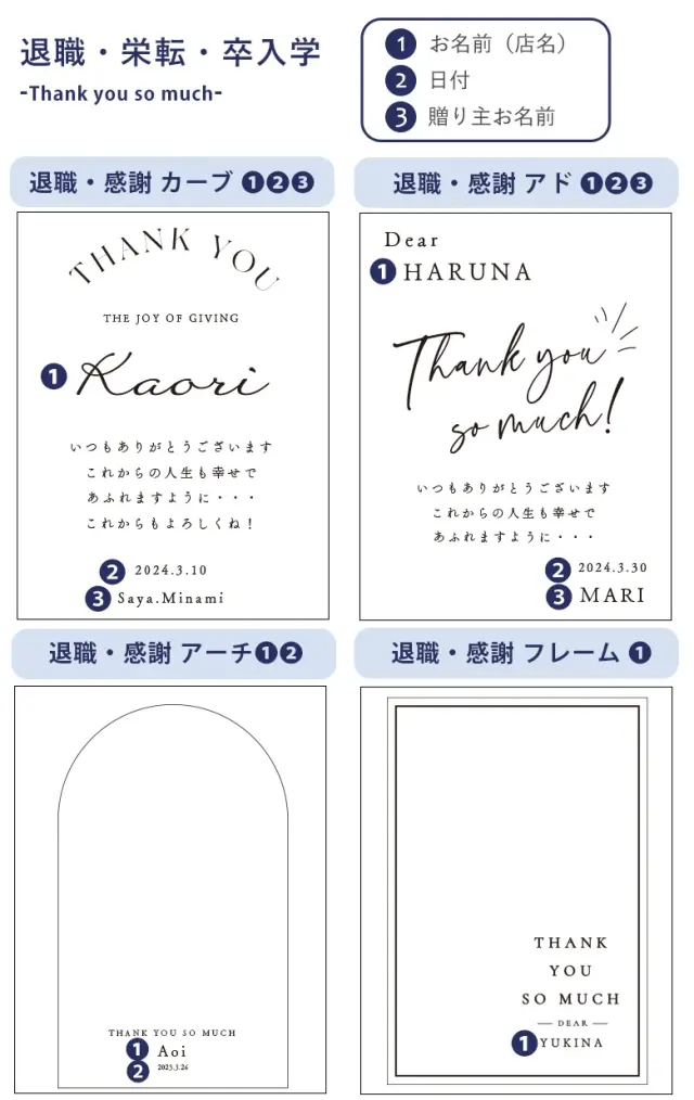 ※デザインにより日付・メッセージ等入れることができない場合がございます。