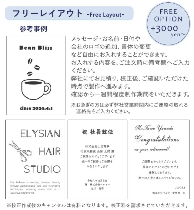 ・「フリーオプション」は3000円〜お受けいたします。詳しくはお問い合わせください。