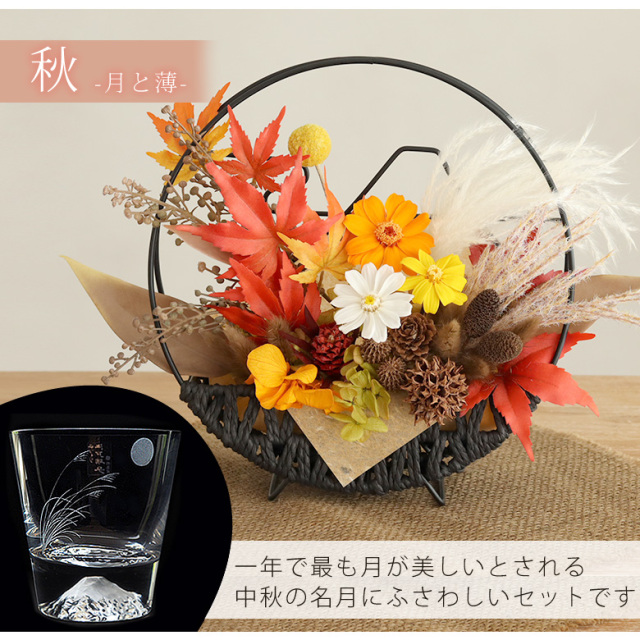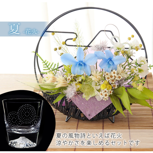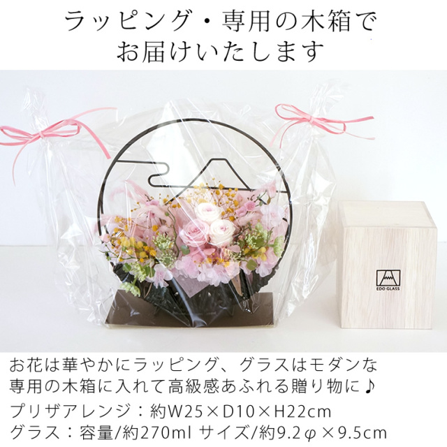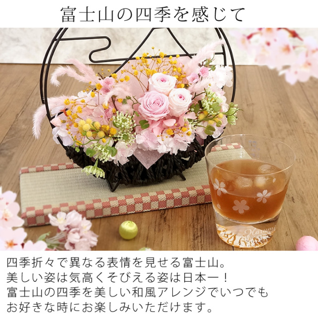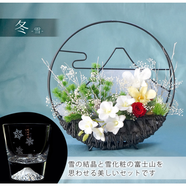 「プリザーブドフラワー日本の四季 富士&名入れ富士山ロックグラス」