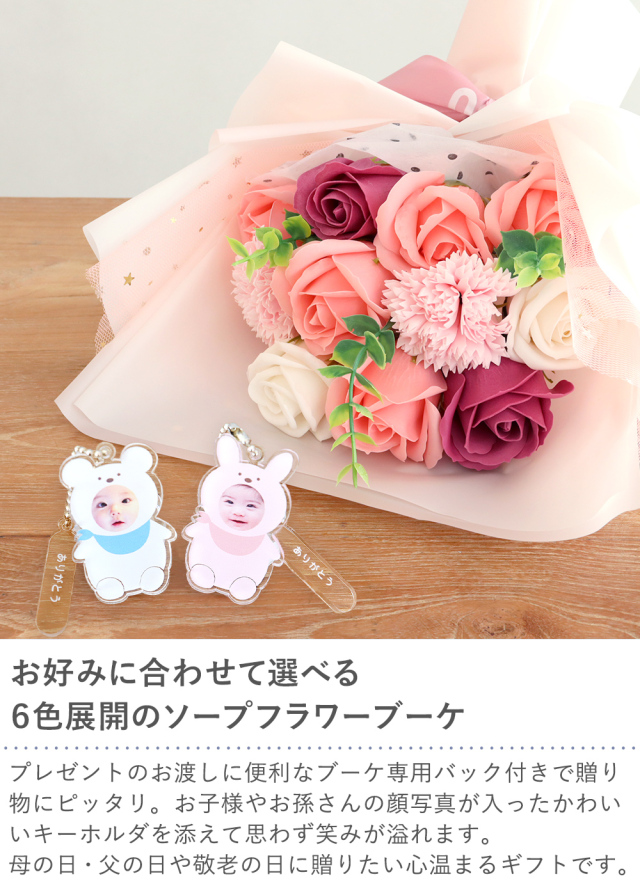 お子様やお孫さんの顔写真が入ったかわいいキーホルダを添えて思わず笑みが溢れます。