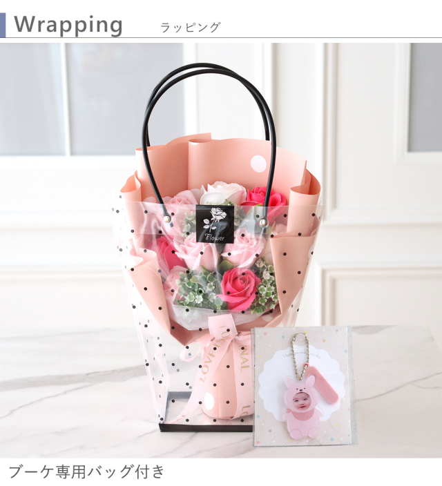 プレゼントのお渡しに便利なブーケ専用バック付きで贈り物にピッタリ。
