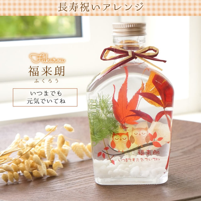 大好きな「おじいちゃん」「おばあちゃん」へ長寿を願う贈り物。優しく落ち着いたカラーで、アレンジされたハーバリウムは