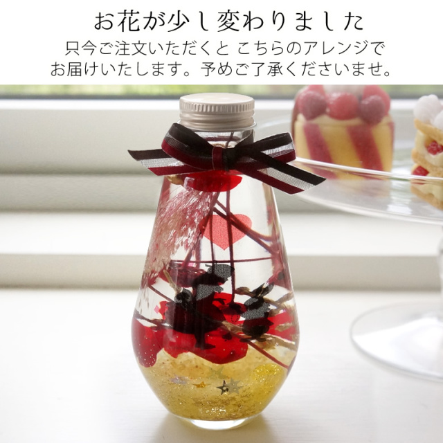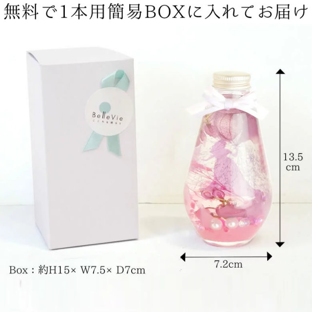 プリザーブドフラワーやドライフラワーをガラスボトルに入れて、専用のオイルに浸すことで、