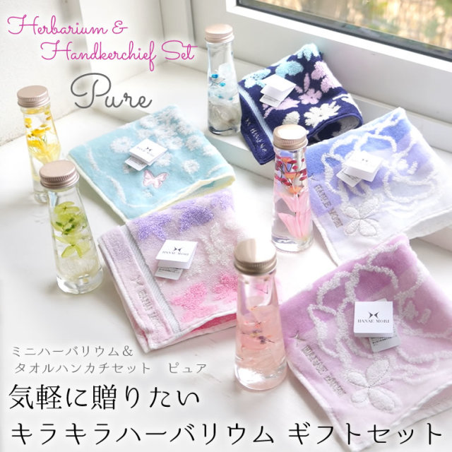 ミニハーバリウム&タオルハンカチセット ピュア