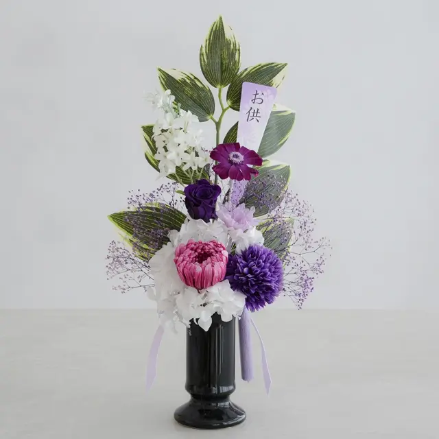 コントラストが美しいお供えプリザーブドフラワーアレンジ