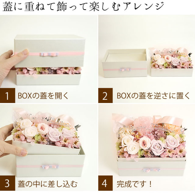 BOXの蓋を開いてそのまま重ねて飾っていただく