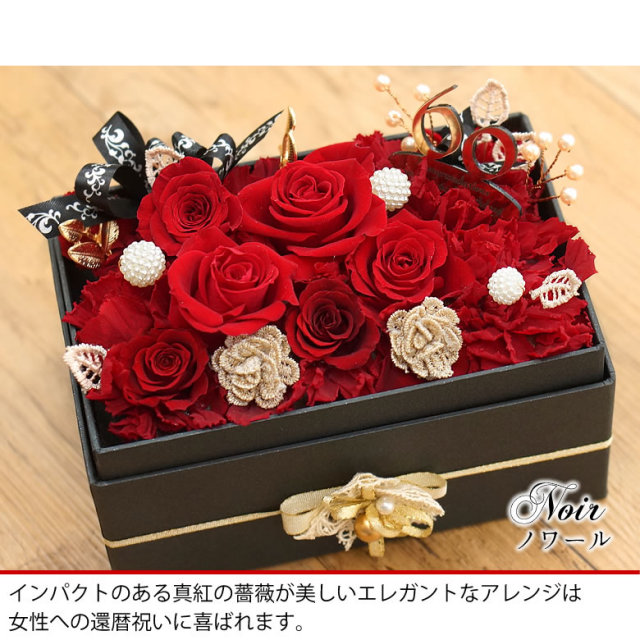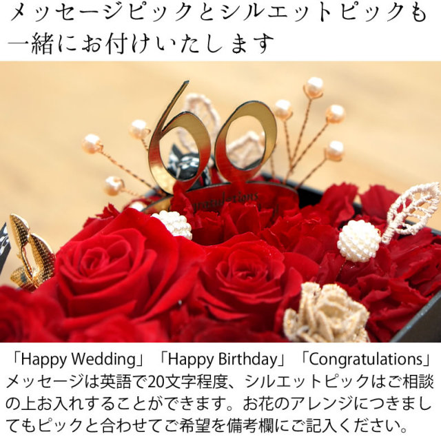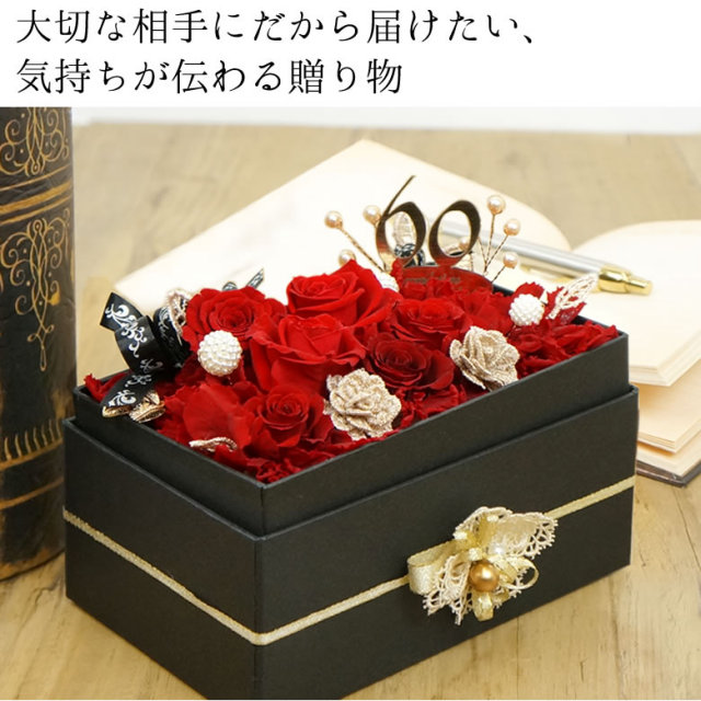真っ赤なローズで彩られたBOXは長寿祝い(還暦祝い)にぴったりです。