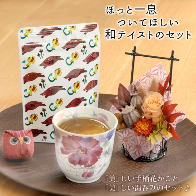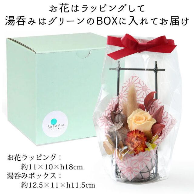 ■商品名/「和風プリザーブドフラワー 手桶花かご & 花湯呑みセット」