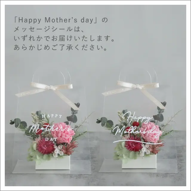 アレンジは全8種の中からお好きなお花をクリアトートに入れてお届けします。