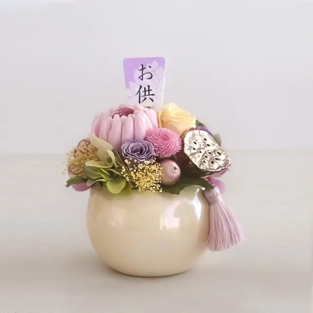 ベルビーフルールTOP New Item 供花・仏花 6,001〜10,000円 プリザーブドフラワー 仏花 お供え花 帆華(ほのか)花器付 価格: ¥6,690 (税込) [ポイント還元 66ポイント〜] 販売期間: 用途をお選びください: 選択してください 自宅用 お誕生日祝い 結婚祝い 昇進・栄転祝い 退職祝い 卒入学・就職祝い バレンタイン ホワイトデー 母の日 父の日 クリスマス お供え その他/備考に記入 ギフトバッグ: 選択してください 不要(¥0) ギフトバッグ希望する(¥220) お花と一緒に贈るお線香: 選択してください お線香を希望しない(¥0) 花琳 渡月 二種香(¥1,100) 花琳 短寸 4入(¥2,200) 特選花琳 短寸 桐箱 6入(¥3,300) 和遊 ラベンダーの香り(¥1,320) 和遊 桜の香り(¥1,320) 和遊 金木犀の香り(¥1,320) 数量: 個 カラーをお選びください在庫購入ももいろ3個 ふじいろ4個 カラーをお選びください在庫購入ももいろ3個 ふじいろ4個 レビューはありません たおやかな色彩が寄り添う やさしさ咲くプリザ仏花 アレンジもフラワーベースも、コロンと丸いフォルムで可愛らしいアレンジ。薔薇や菊の彩りが、大切な方への想いを穏やかに伝えます。クリアケースに入れて丁寧にお届けします。 いつでも美しいプリザの仏花 水やり不要でお手入れが簡単なプリザーブドフラワー。花粉の心配もなく、安心して飾れます。美しさが長持ちするので繰り返し準備する負担も少なく、ご先祖様への感謝の気持ちを心地よく届けられます。 商品詳細 プリザーブドフラワー 仏花 お供え花 帆華(ほのか)花器付 SPEC SIZE:W150×D120×H190mm 商材:プリザーブドフラワー、ドライフラワー、アートフラワー、ピック、花器(陶器)、他。 その他 ※お花や葉っぱの種類が若干変更になる場合がございます ※沖縄・離島・一部地域は追加送料がかかる場合があります ※土・日・祝日の発送業務はお休みです 関連商品 プリザーブドフラワー 仏花 お供え花 凛(りん)花器付 ¥8,480(税込) 商品を見る プリザーブドフラワー 仏花 お供え花 華麗(かれい) ¥18,480(税込) 在庫切れ 商品を見る プリザーブドフラワー 仏花 お供え花 花窓(優雅ゆうが・紫水しすい)S ¥7,580(税込) 商品を見る プリザーブドフラワー 仏花 お供え花 花窓(紫桜 しお)M ¥11,580(税込) 在庫 4 個 商品を見る プリザーブドフラワー 仏花 お供え花 禅〜ZEN〜(ぜん)花器付 当店通常価格: オープン価格 ¥9,280(税込) 商品を見る プリザーブドフラワー 仏花 お供え花 乙女菊(おとめぎく) ¥12,850(税込) 在庫切れ 商品を見る プリザーブドフラワー 仏花 お供え花 紫檀(したん) ¥16,980(税込) 在庫切れ 商品を見る プリザーブドフラワー 仏花 お供え花 儚花(はかなばな) ¥7,980(税込) 在庫 1 個 商品を見る プリザーブドフラワー 仏花 お供え花 安穏華(あんのんか) ¥4,980(税込) 商品を見る 和風プリザーブドフラワー仏花 童夢(どうむ) ¥5,980(税込) 在庫切れ 商品を見る 和風プリザーブドフラワー 仏花 紫珠(しじゅ) ¥10,800(税込) 在庫切れ 商品を見る プリザーブドフラワー 仏花 お供え花 清輝(せいき)花器付 当店通常価格: オープン価格 ¥6,880(税込) 在庫切れ 商品を見る 和風 プリザーブドフラワー 仏花 紫苑(しおん)花器付 当店通常価格: オープン価格 ¥3,780(税込) 在庫切れ 商品を見る プリザーブドフラワー 仏花 お供え花 紗釈(さしゃ) ¥1,980(税込) 商品を見る 【ハーバリウム】仏花 はなしずく(2本セット) ¥4,980(税込) 在庫切れ 商品を見る 【オプション】特選花琳 短寸6入(桐箱入) 線香 ※単品購入不可※ ¥3,300(税込) 在庫 1 セット 数量:0123456789101112131415161718192021222324252627282930 セット 【オプション】花琳 短寸4入 線香 ※単品購入不可※ ¥2,200(税込) 在庫 2 セット 数量:0123456789101112131415161718192021222324252627282930 セット 【オプション】花琳 渡月 二種香 線香 ※単品購入不可※ ¥1,100(税込) 在庫 5 セット 数量:0123456789101112131415161718192021222324252627282930 セット 【オプション】 カメヤマ 和遊 香りのお線香 ※単品購入不可※ ¥1,320(税込) 商品を見る 【オプション】 薫寿堂 お試し線香 ※単品購入不可※ ¥440(税込) 商品を見る