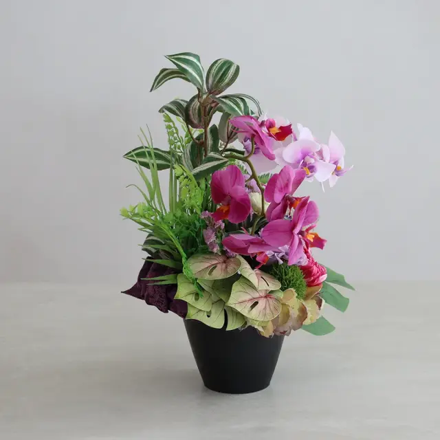 モンステラにアジアンタム南国系のファーンとオーキッドとホワイトパープルのファレノに